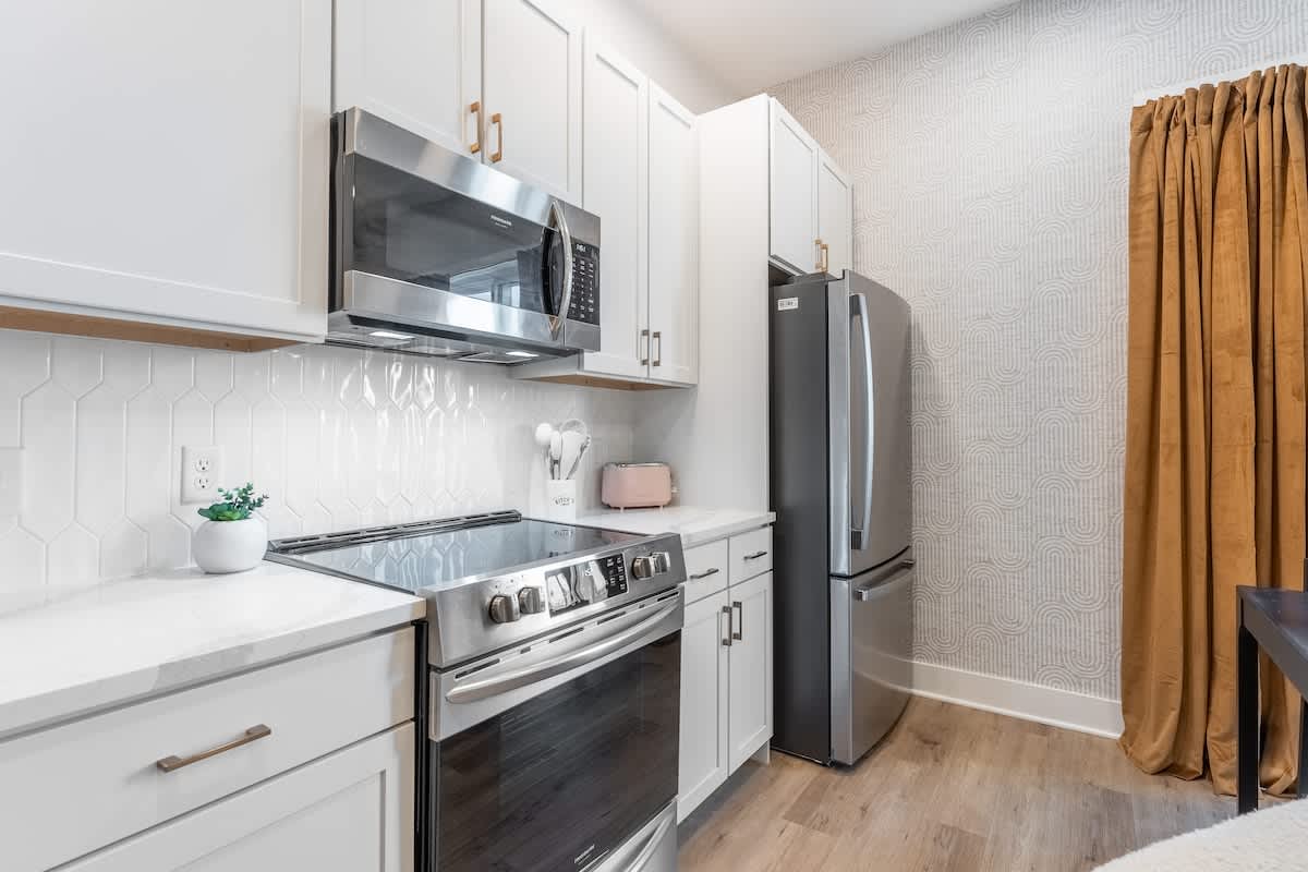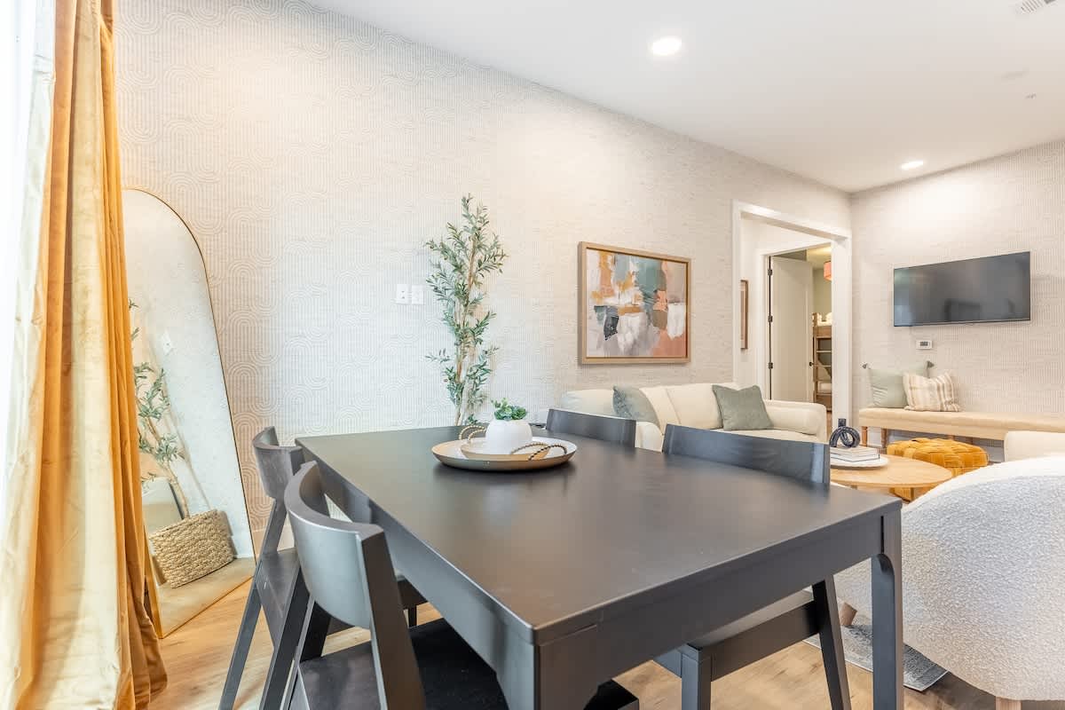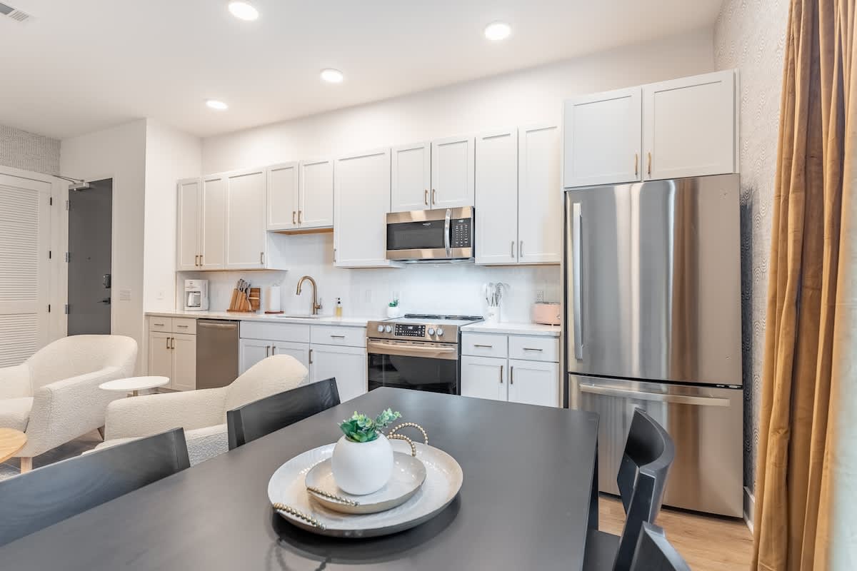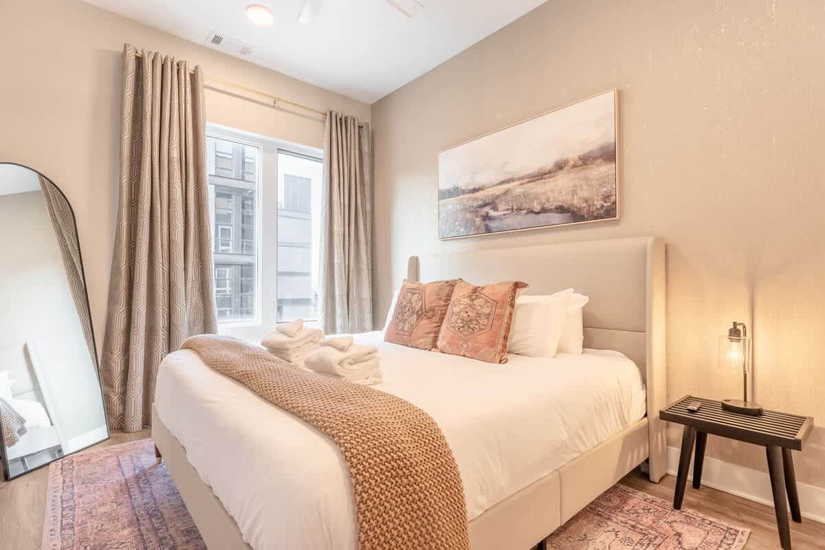Great “staycation” from Dickson, Tn in Nashville! We attended the Music City Bowl and did some fun things around Nashville for a couple of days! Ate at the DogHaus (walkable) and it was delicious and my daughter got an açaí bowl from next door which she said was excellent! The condo was beautiful with tall ceilings and modern decor. Great stay! Thank you!