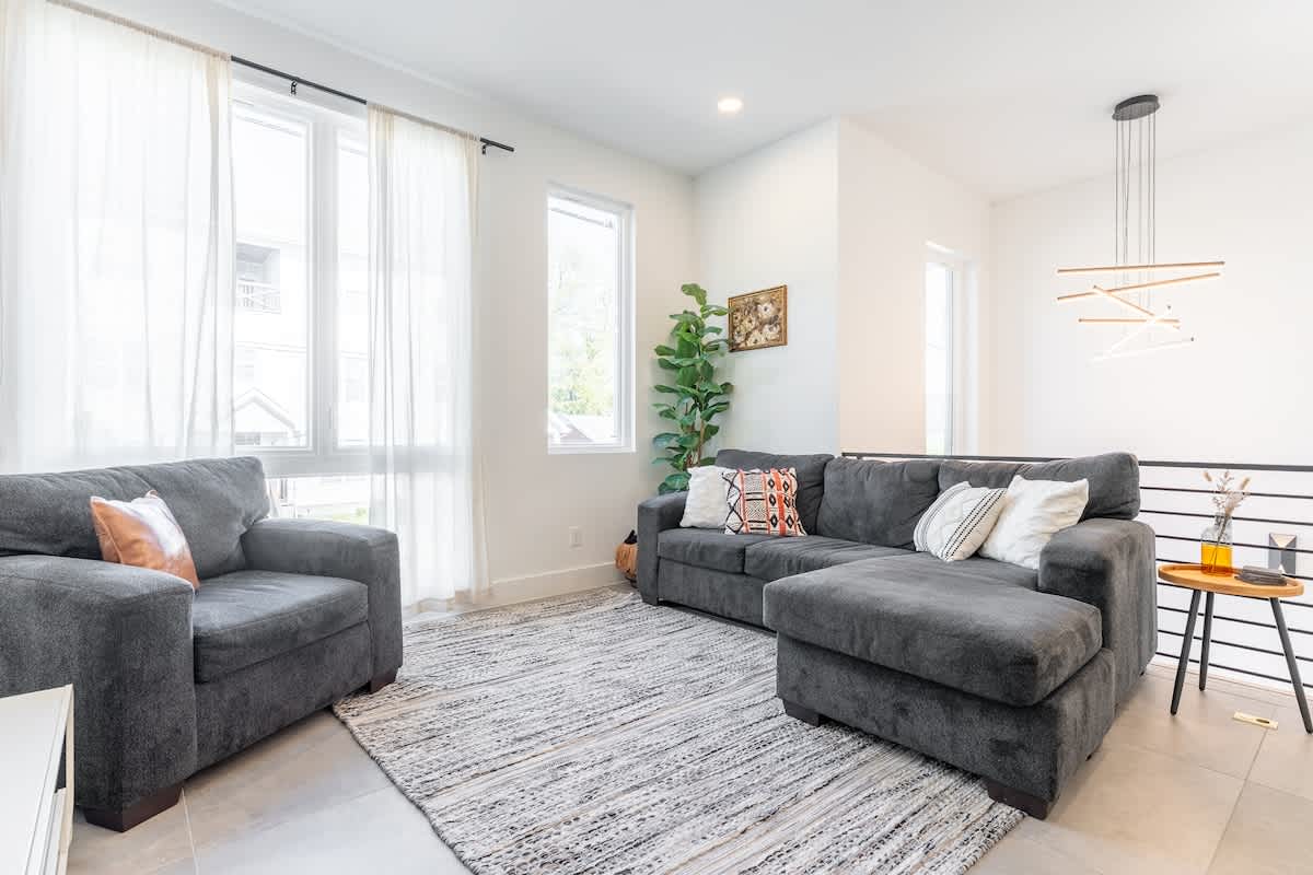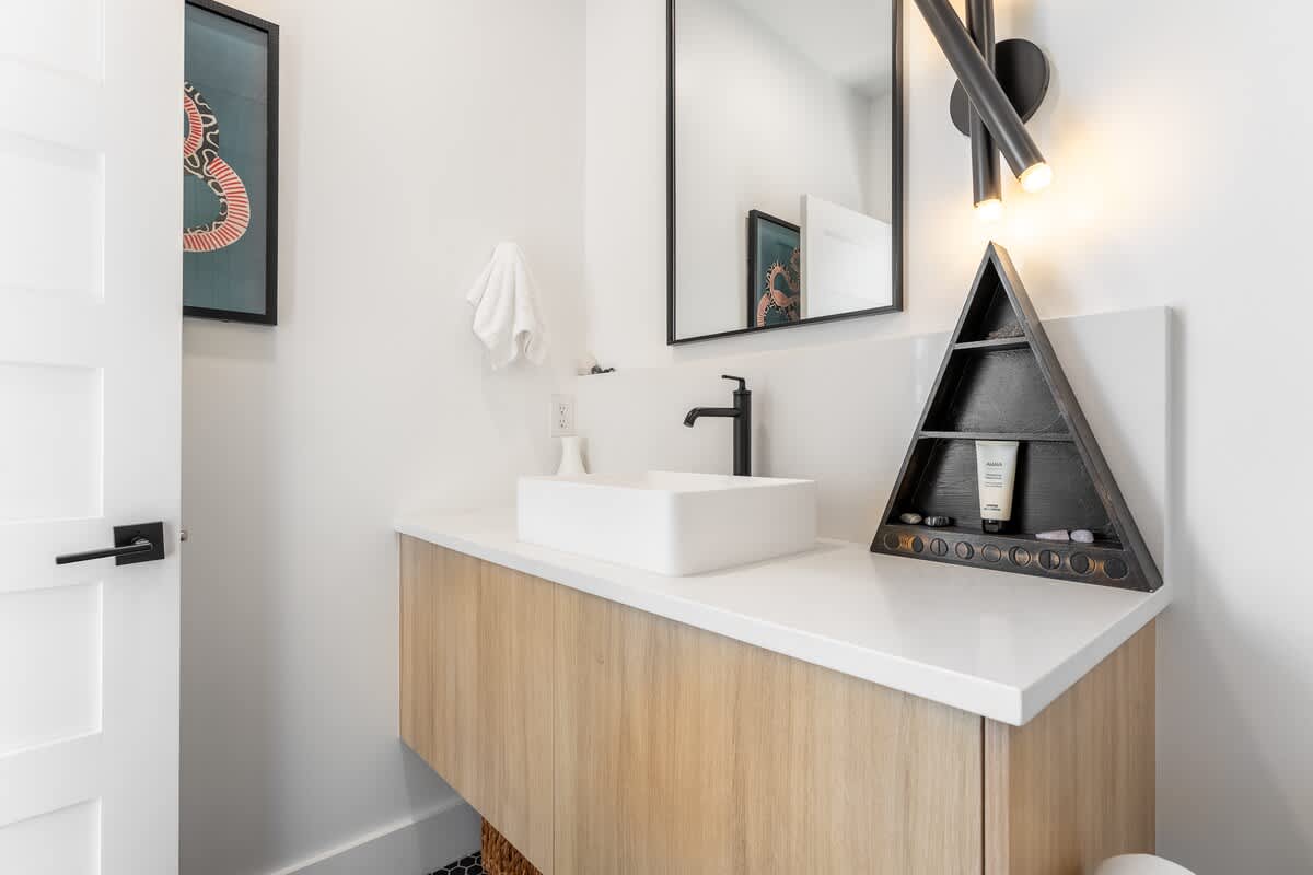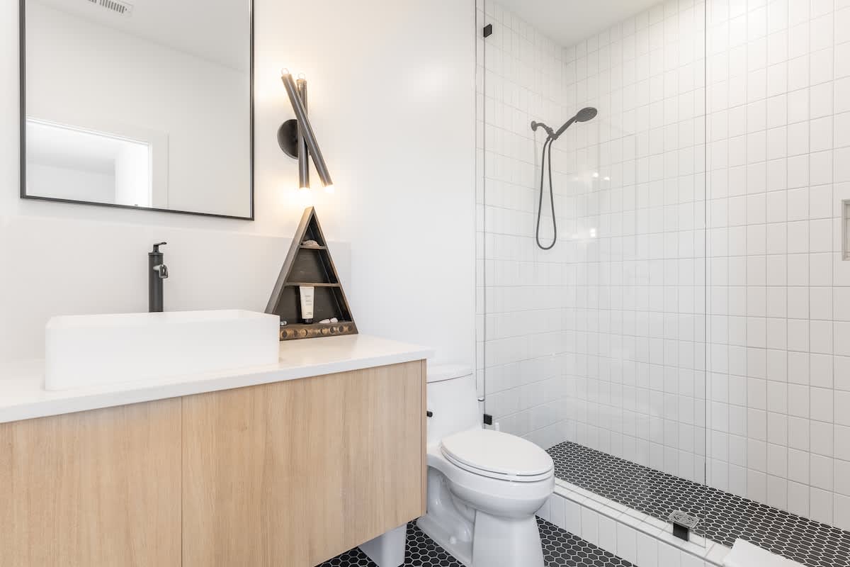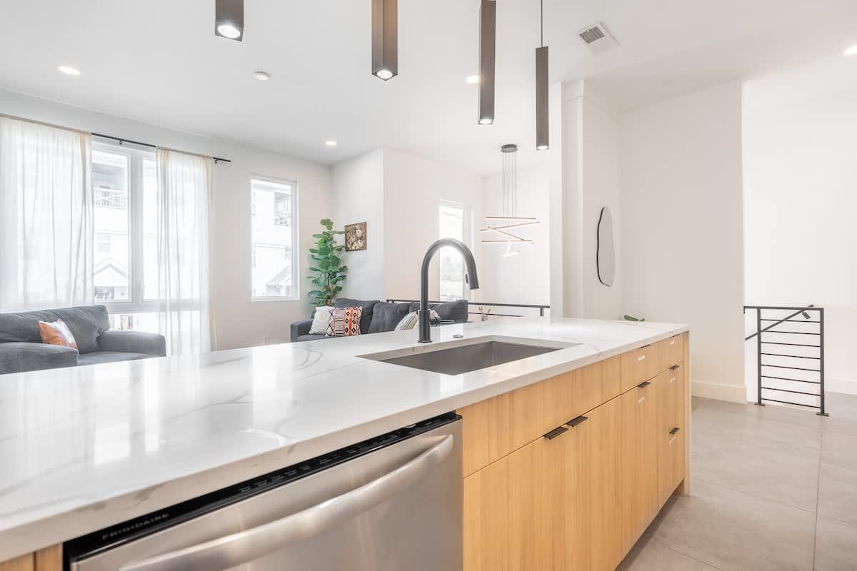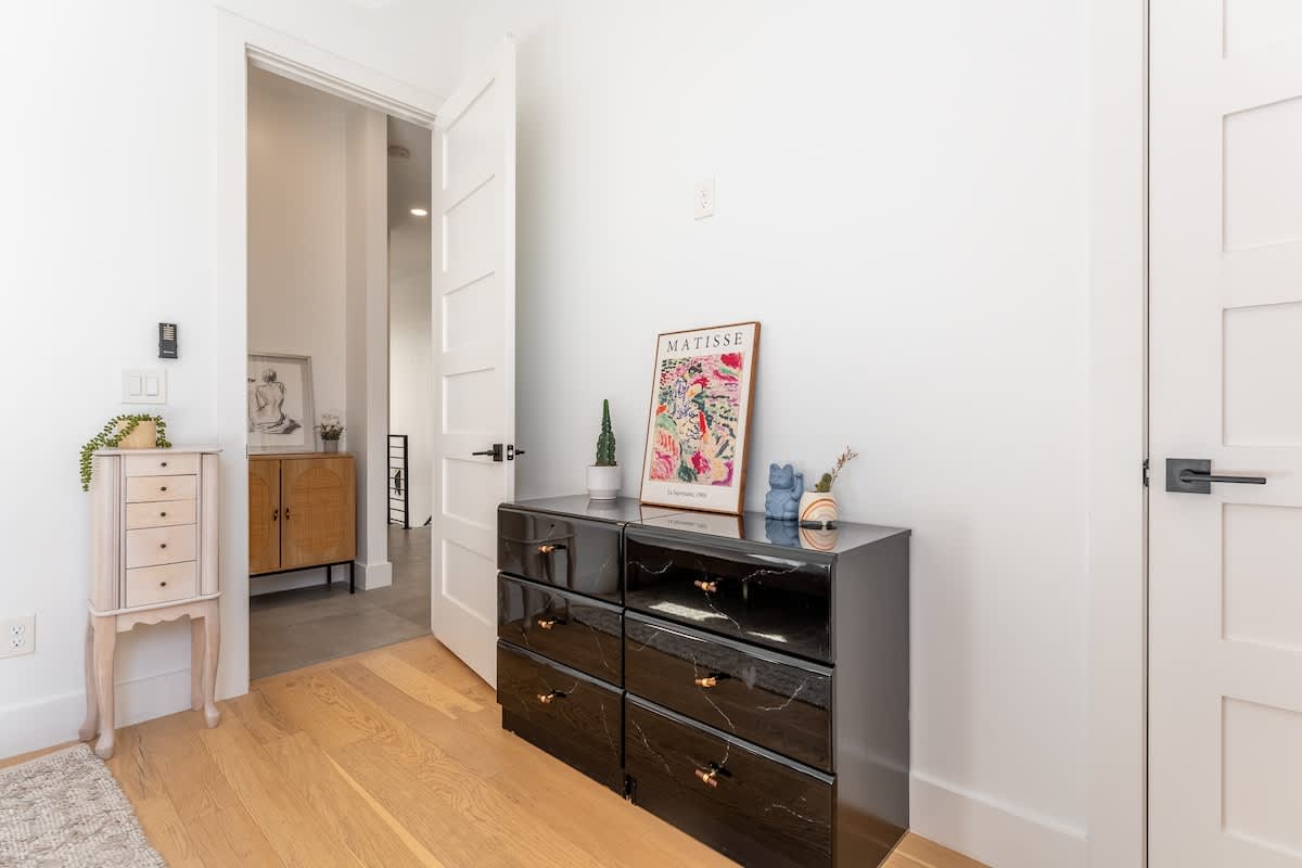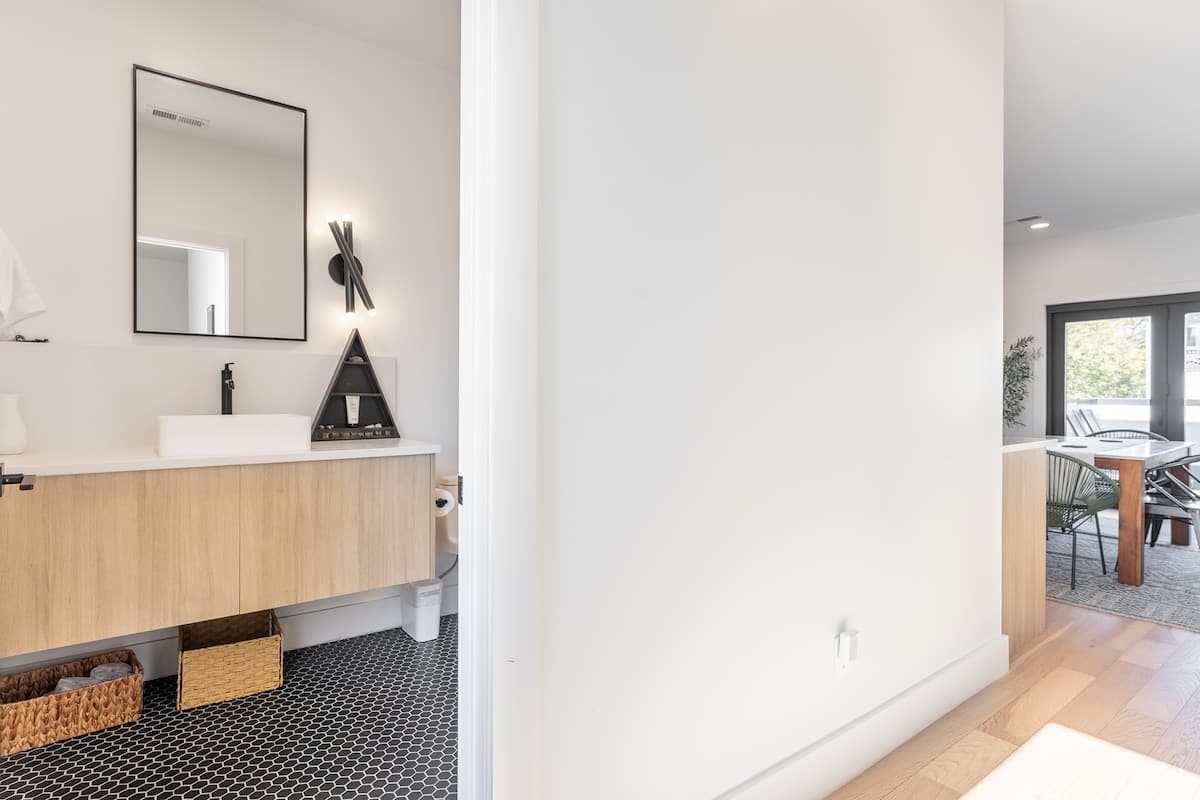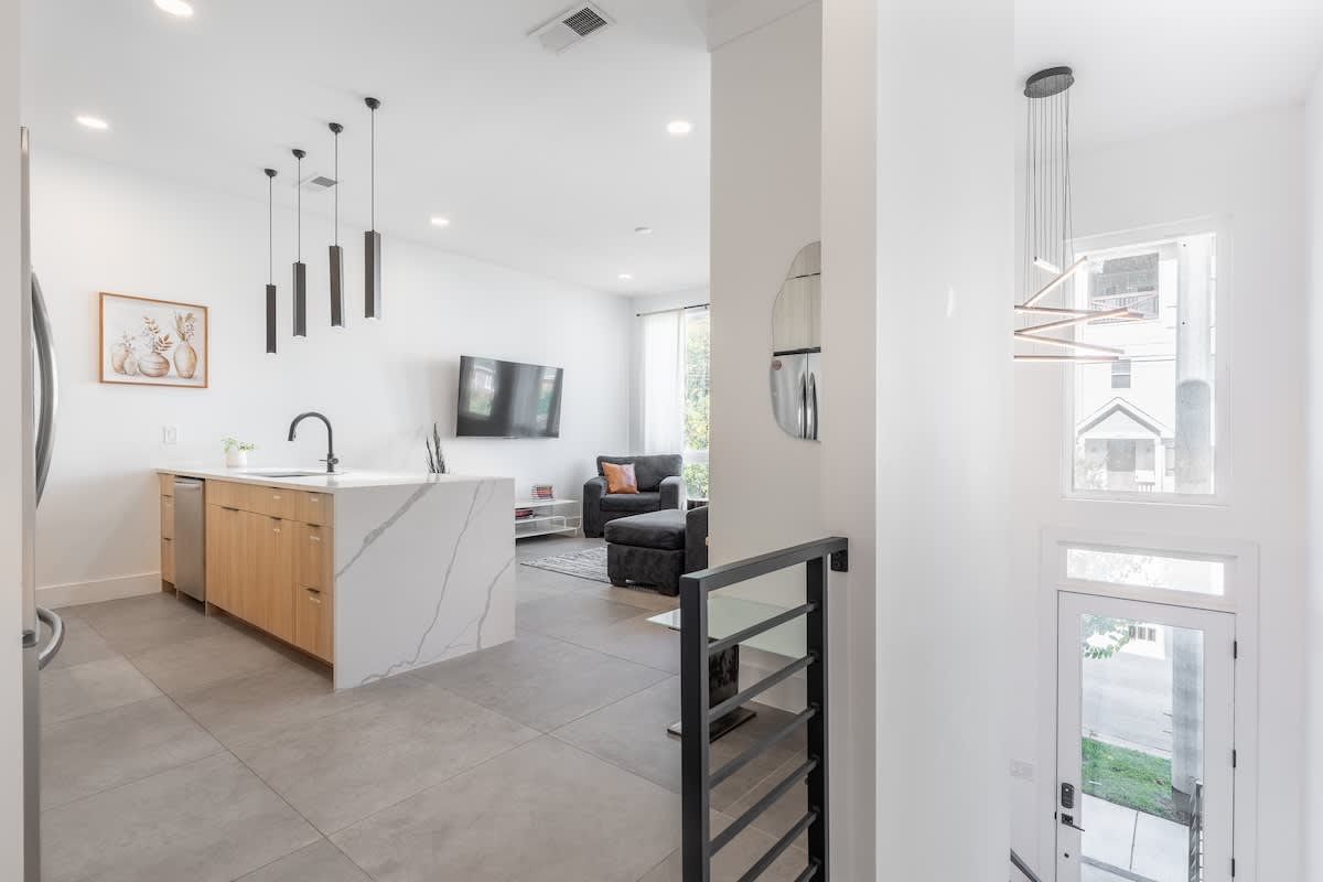 Inside, you’ll find three spacious bedrooms, each with their own private bathroom for the ultimate comfort and privacy. Two feature plush king beds, while the third offers a cozy queen—perfect for families, couples, or groups traveling together. The chic design aesthetic adds warmth and personality throughout the home. The open-concept main floor invites connection, with a sleek chef’s kitchen featuring high-end appliances and a large island that flows seamlessly into the dining and living areas. It’s the perfect setup for cooking, entertaining, or unwinding after a day in the city. Head up to the third level to enjoy a beautiful bonus space and step outside to your private deck for a relaxed evening under the Nashville sky. Fire up the grill, share a meal, or simply take in the view with a glass of wine in hand.