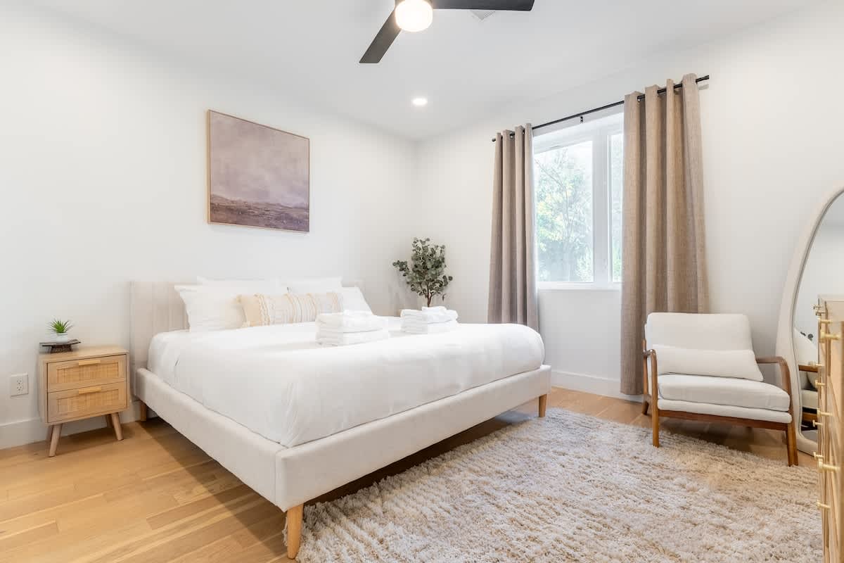 Level One - Spacious bedroom with king bed and attached full bathroom