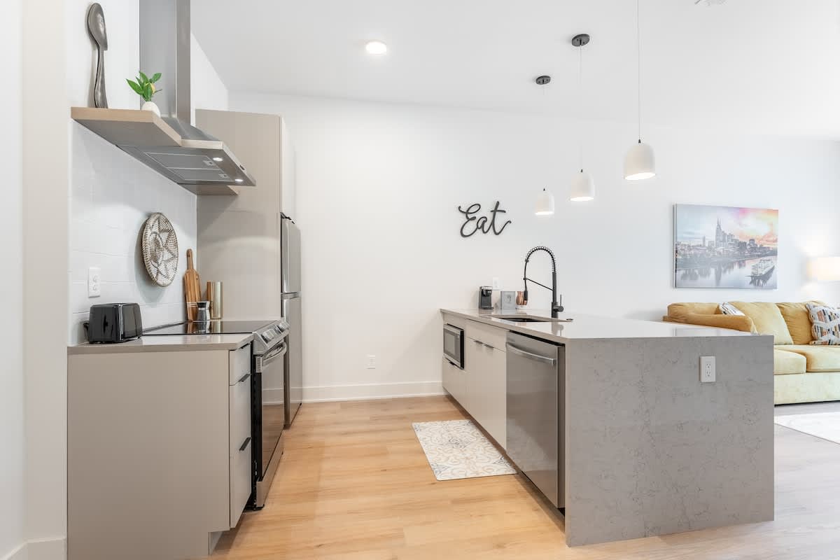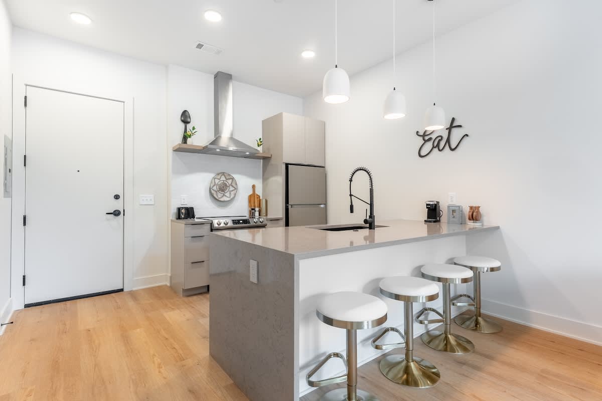 A beautiful brand new condo with mid century accents, high ceilings, tons of natural light, and a spacious open floor plan. Located in the East Inglewood area and just two exits from Opry Mills, you’ll have shopping, eateries, and tons of activities to explore nearby!