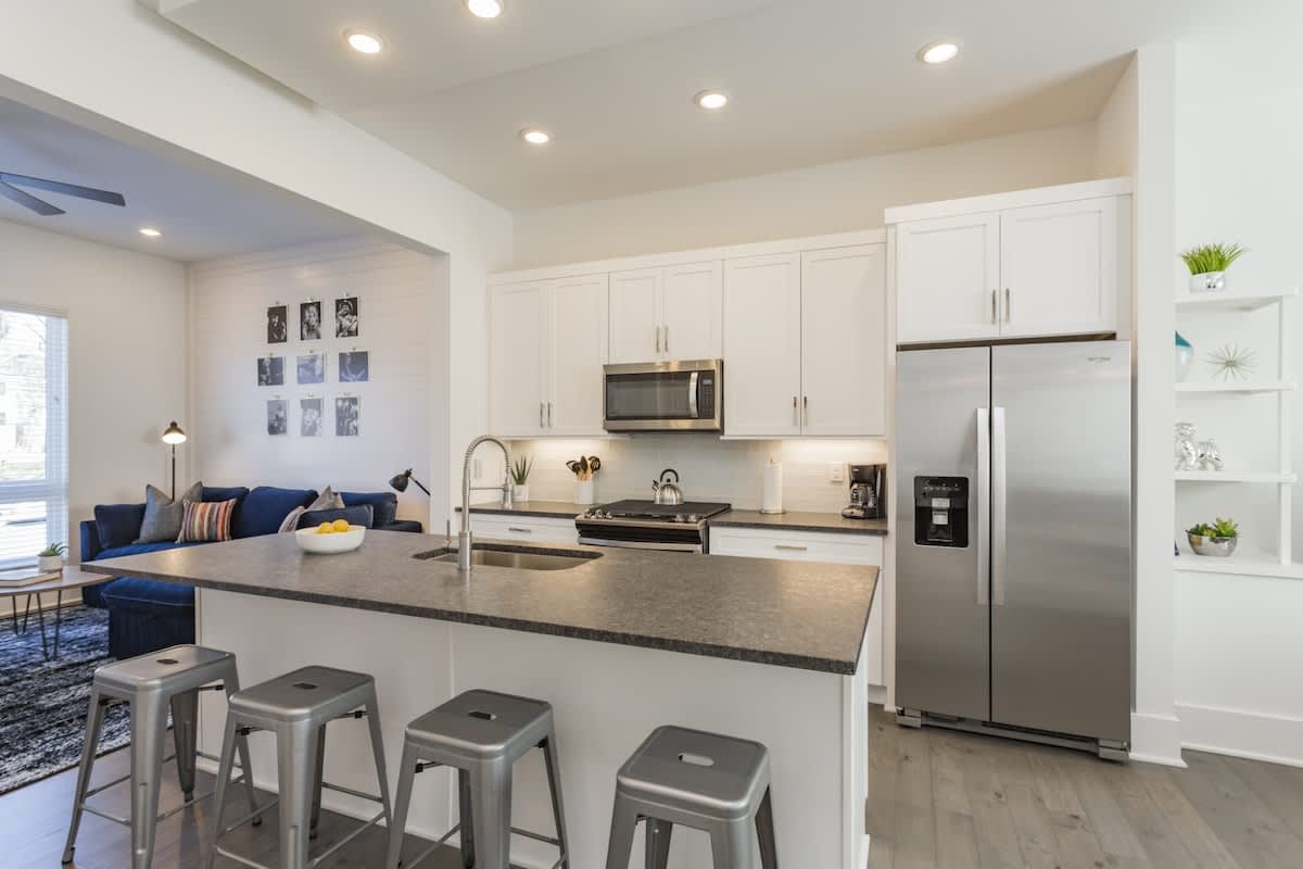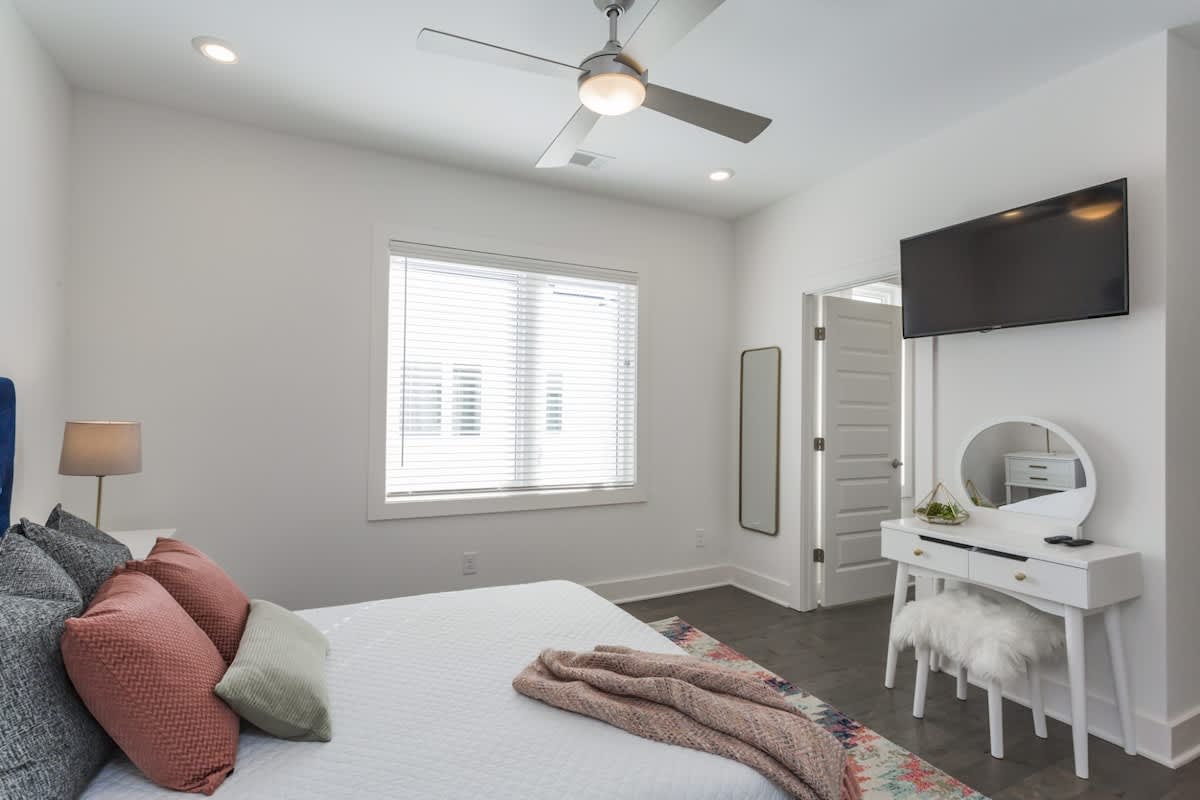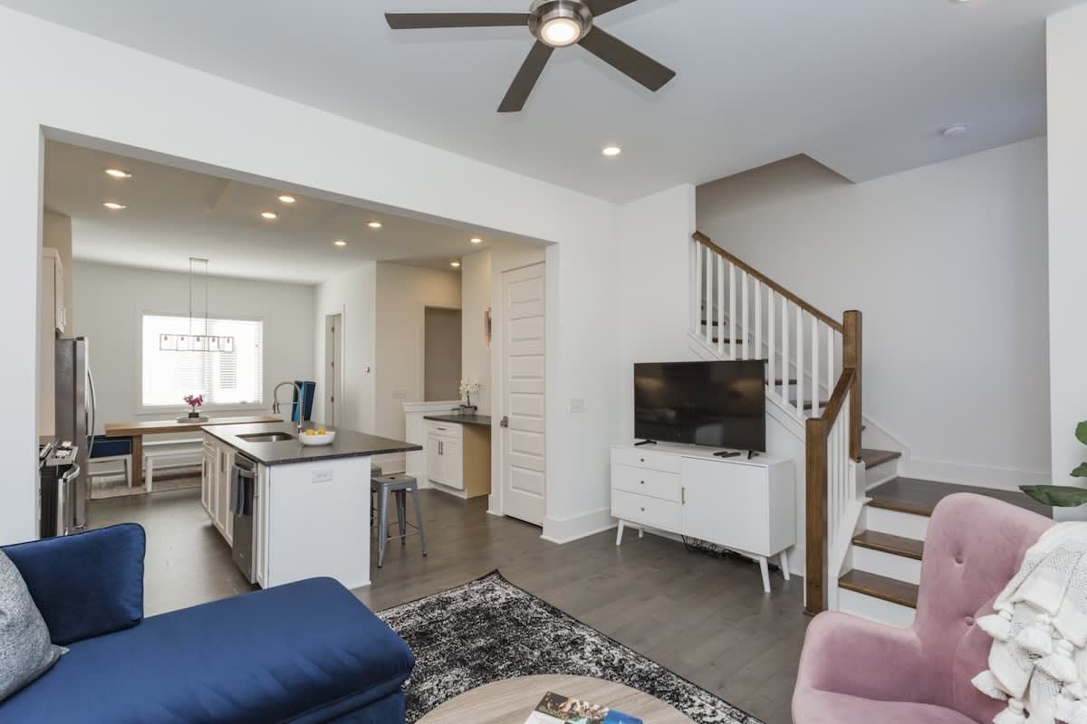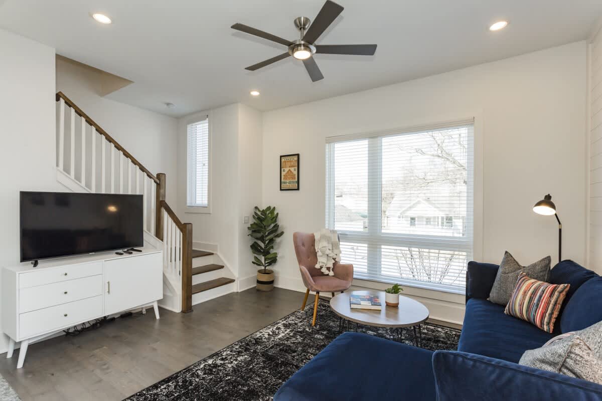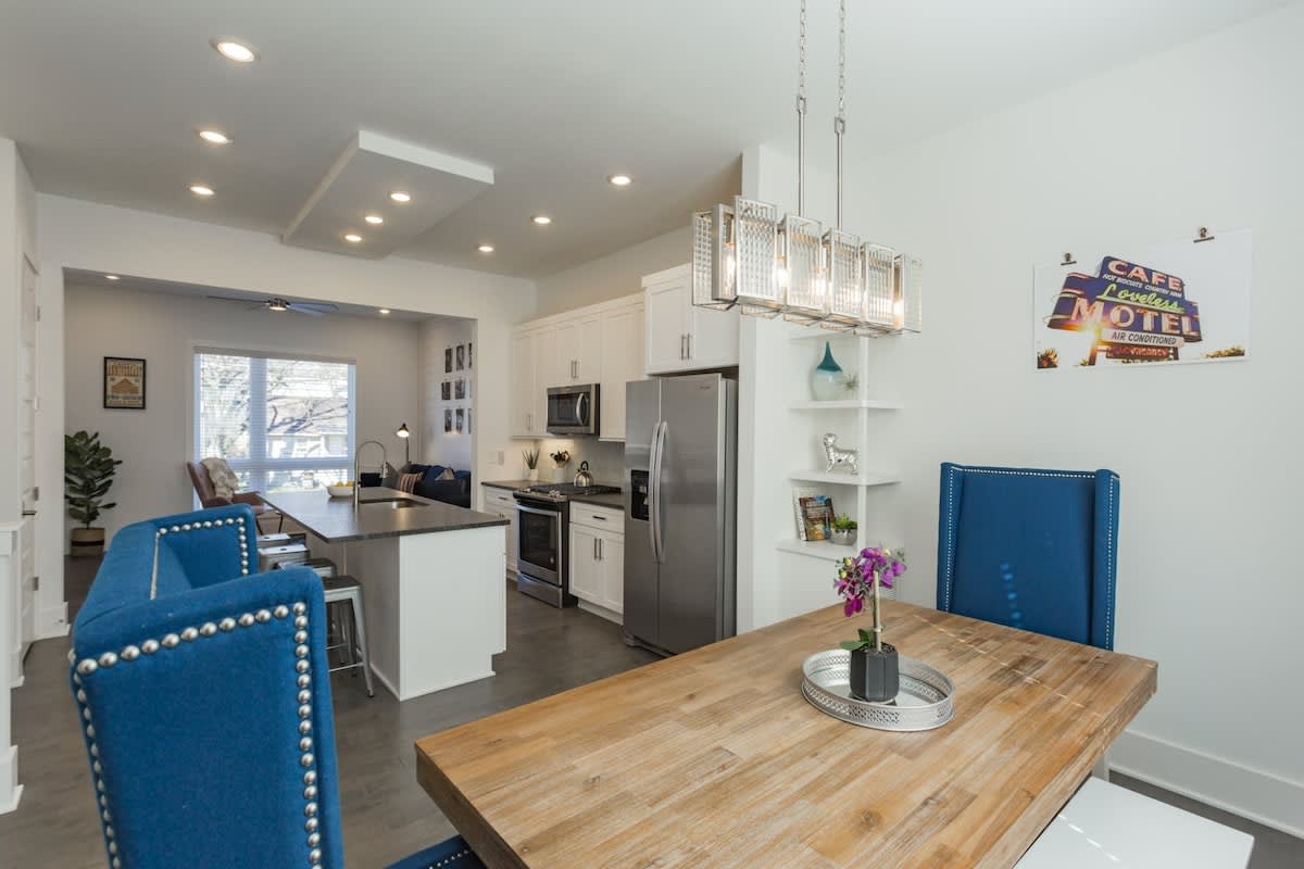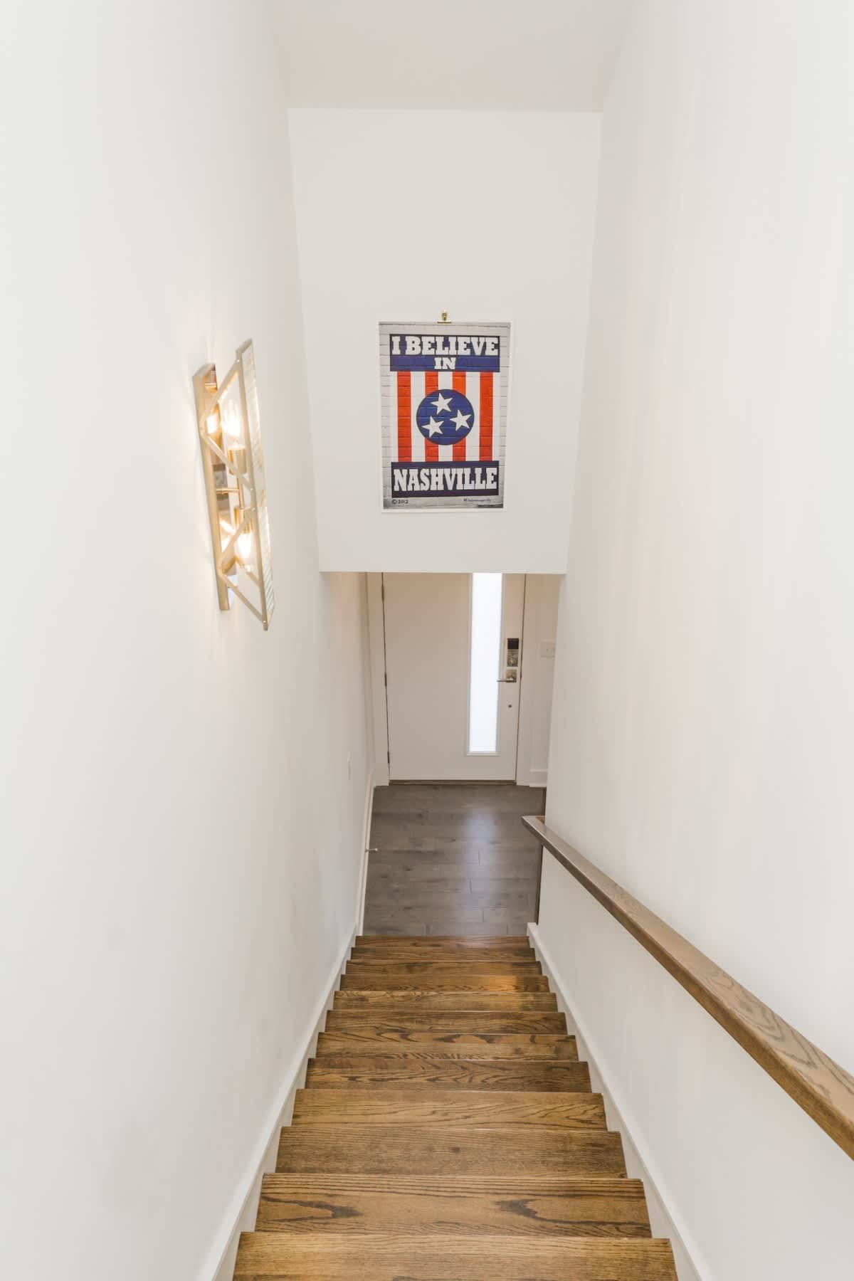 This cozy, three-level townhome offers an open floor plan in the kitchen and living area. The elegant, modern design showcases stainless steel appliances and pops of color in each room. This house is located in East Nashville, in close proximity to unique shops and restaurants. Along with the bright colors, this house also has a Nashville flair and is sure to make you feel right at home! With this convenient location, you can Uber or Lyft to Broadway or the