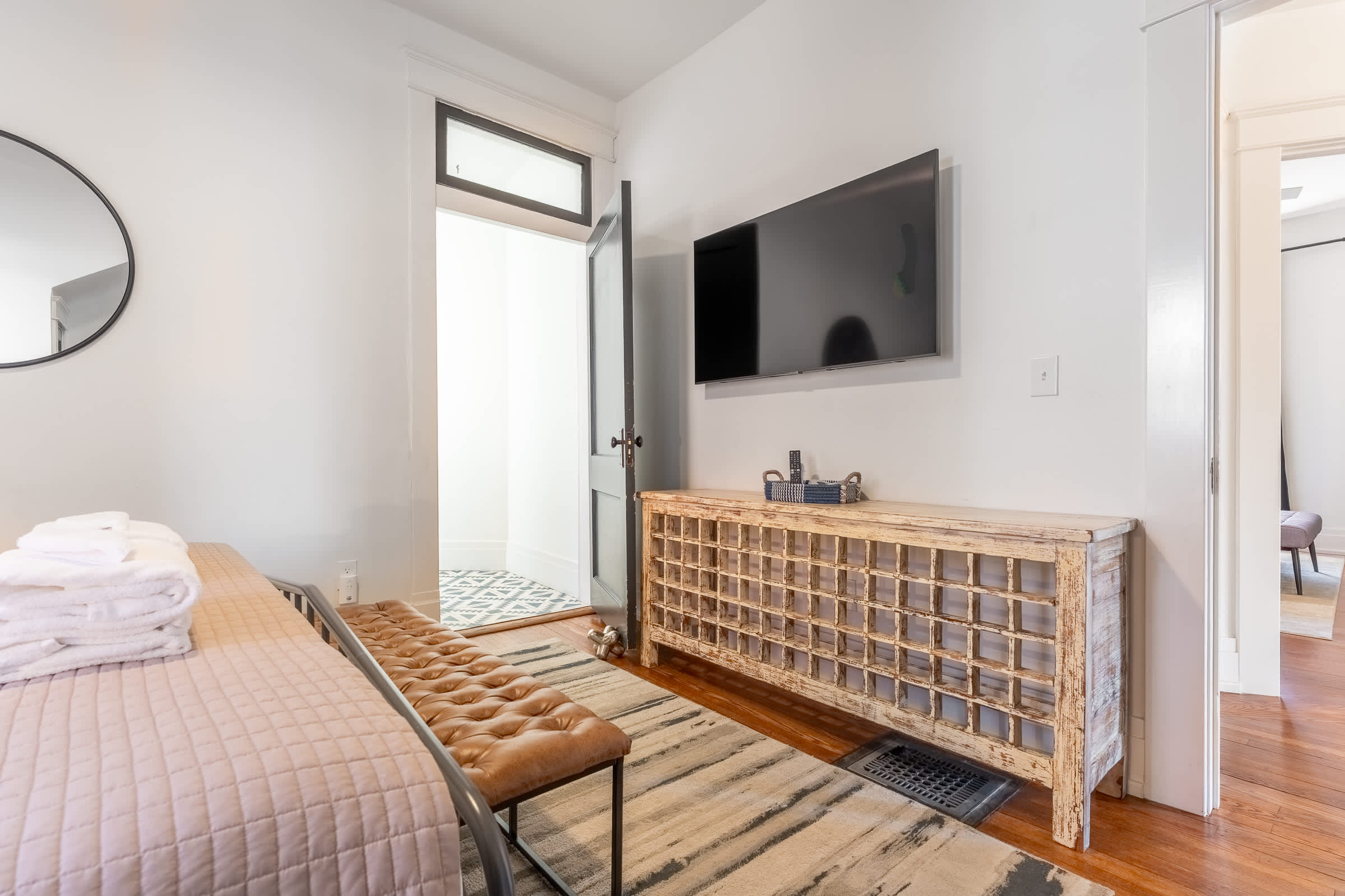 Bedroom Four - one king bed, smart TV, and access to the sunroom