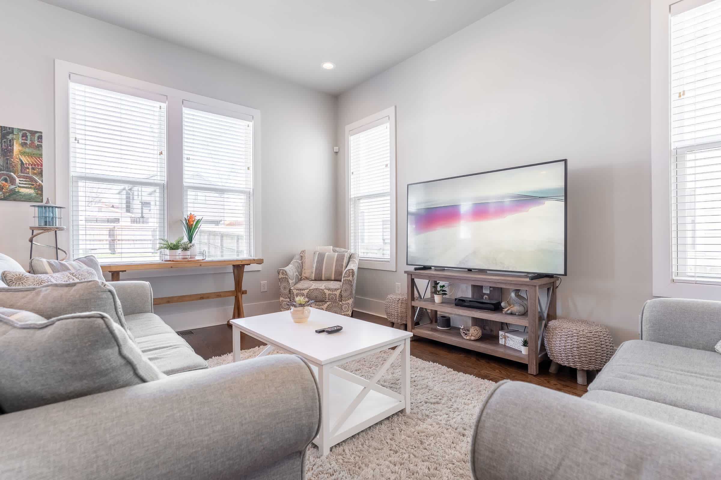 Welcome to The Brightside Retreat, a beautiful 3 story home in East Nashville featuring multiple outdoor living spaces, including balconies, porches, patios, and a fenced in yard. Designed for slow mornings, golden-hour hangs, and everything in between. Thoughtfully created as a peaceful escape just minutes from downtown, this home offers the best of both worlds…quiet comfort and easy access to Nashville’s music, dining, shopping, and more!