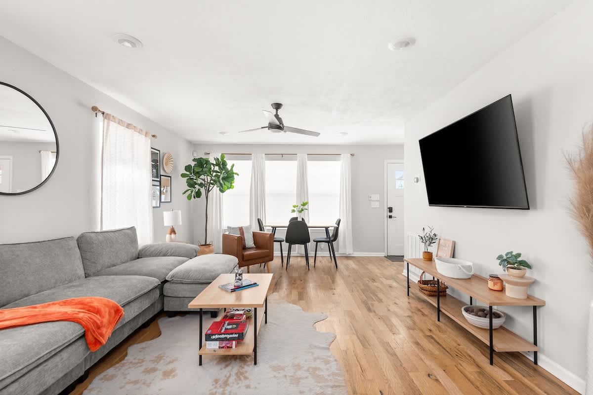 Step into this charming one-story home in The Nations, one of Nashville’s popular neighborhoods known for its local breweries, trendy eateries, and walkable streets. With its bright, modern aesthetic and cozy touches, this 3-bedroom, 2-bath getaway is the perfect spot for families, friends, or couples looking to relax in Nashville style.