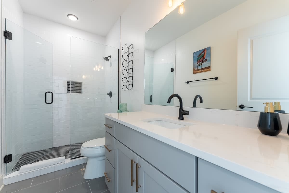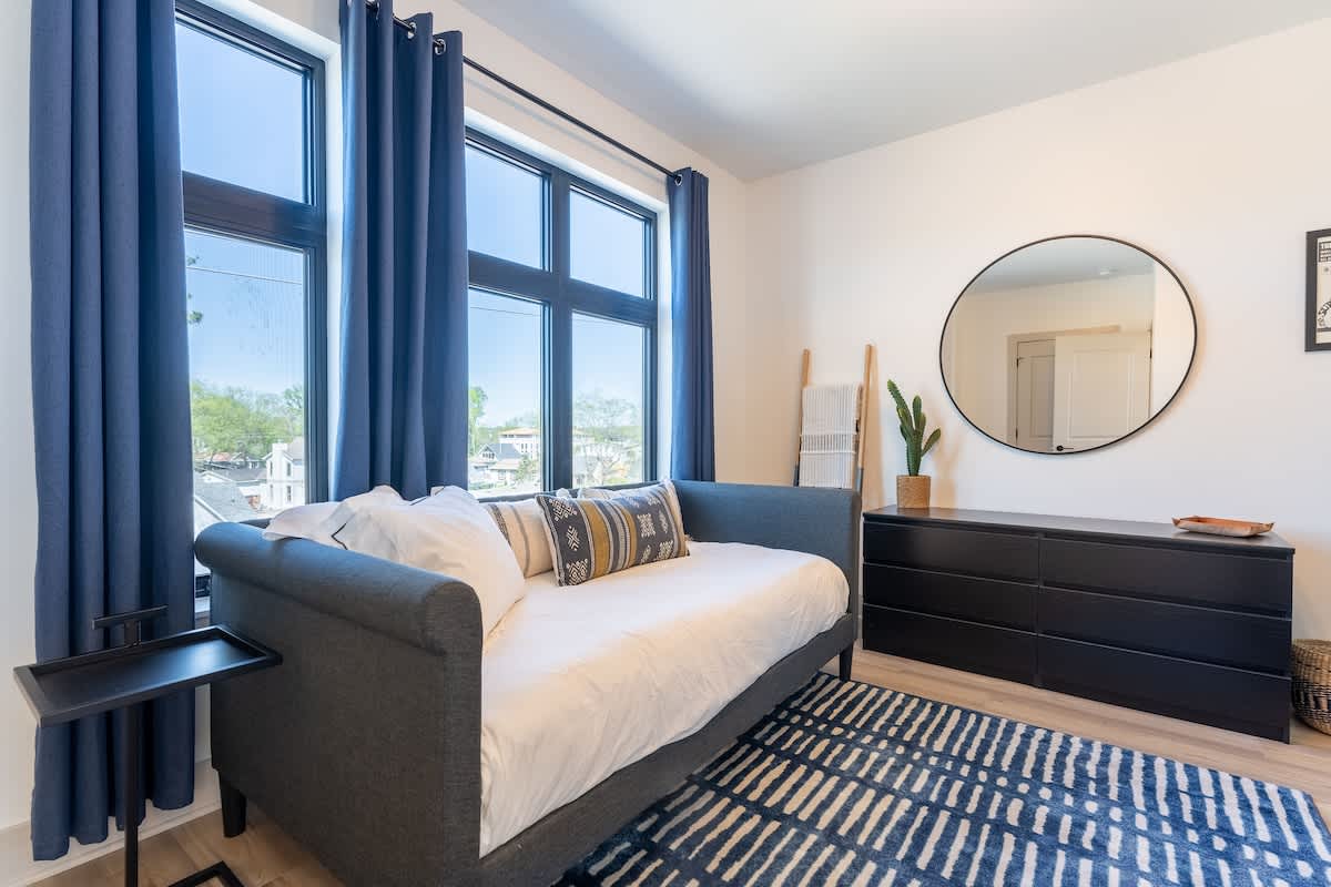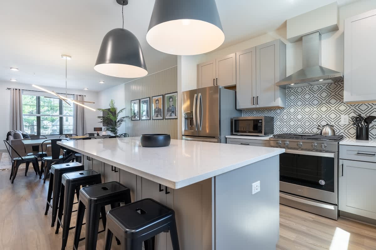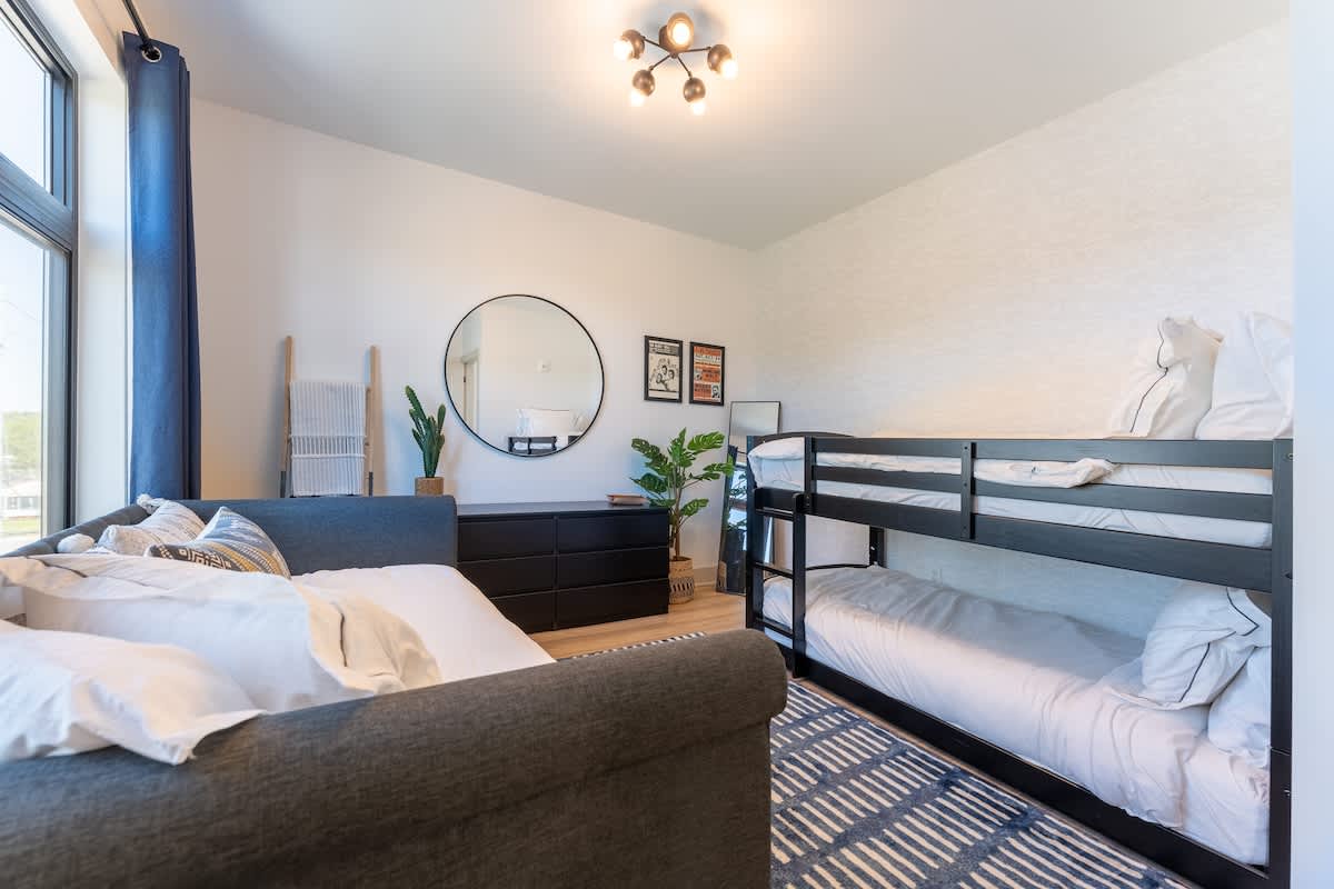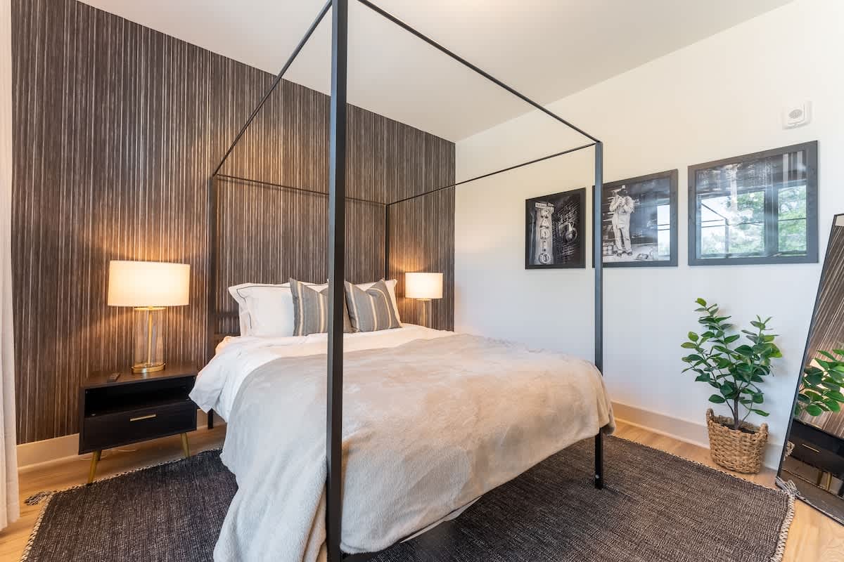 ★Welcome to The Jailhouse Rock★ This industrial modern townhome delivers an edgy aesthetic, luxurious open layout, and convenient location for the ultimate Nashville vacation experience. The multi-level space is made up of four cozy bedrooms, four and a half bathrooms, a trendy, rock-n-roll infused living area featuring hints of the King himself, and a show-stopping skyline view on the fourth level rooftop. Located just minutes from East Nashville Hotspots and Downtown Broadway, you’ll have the