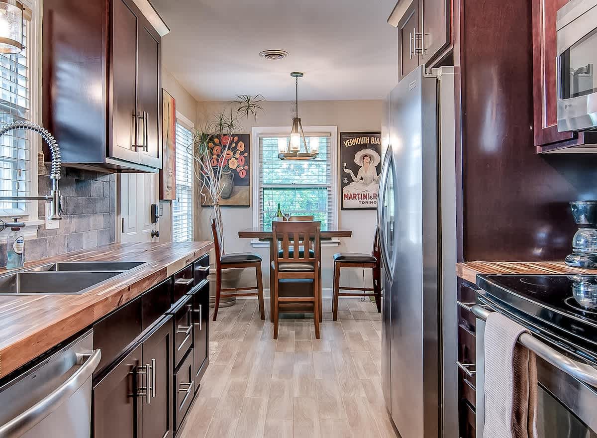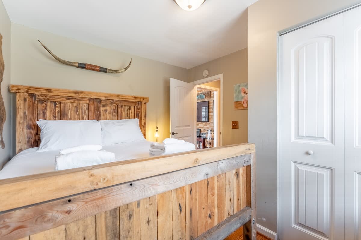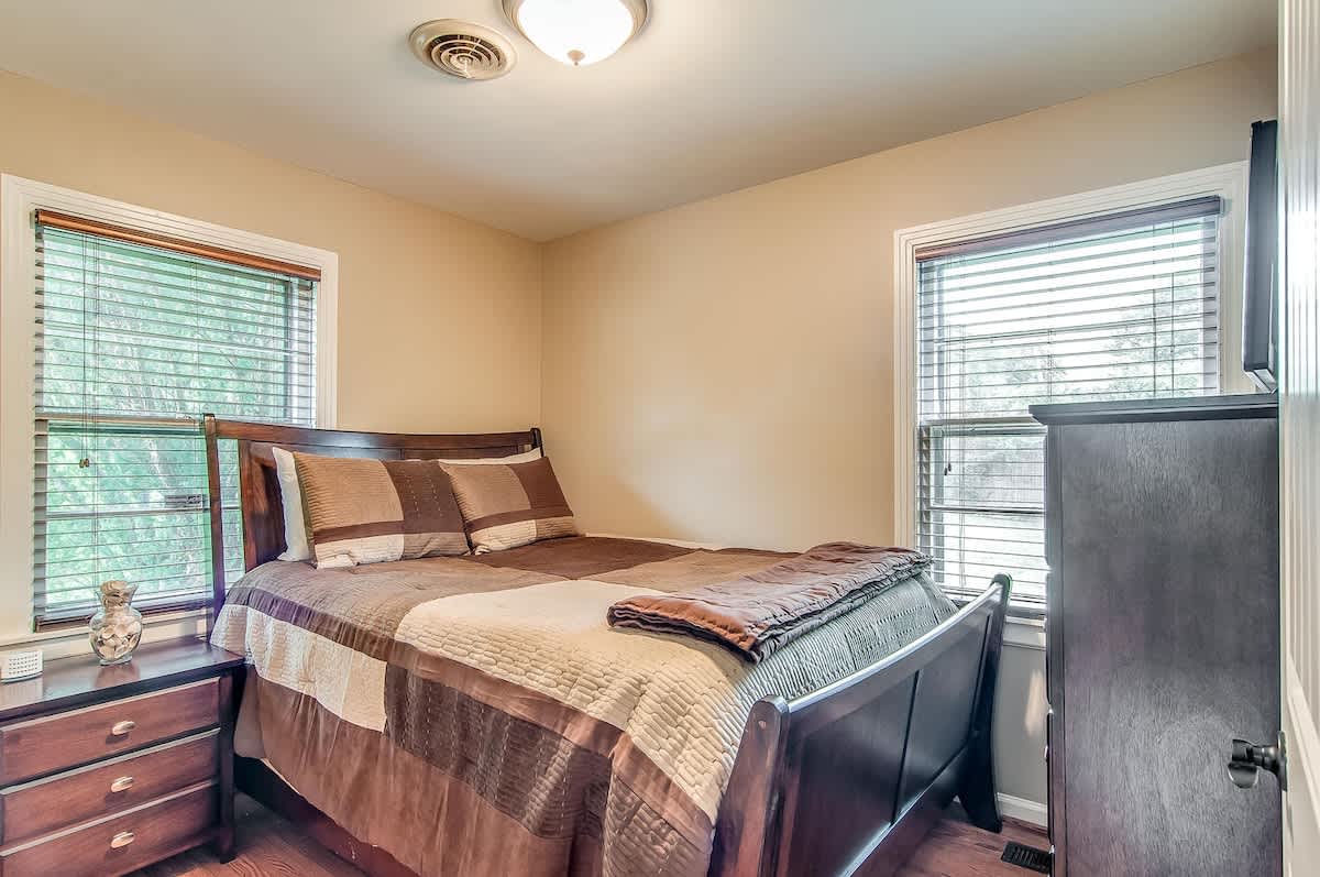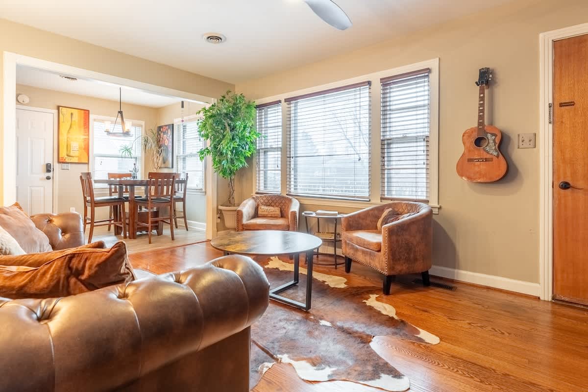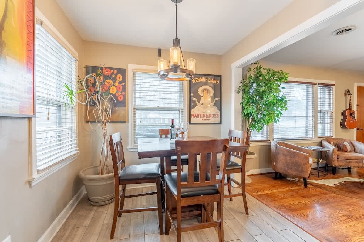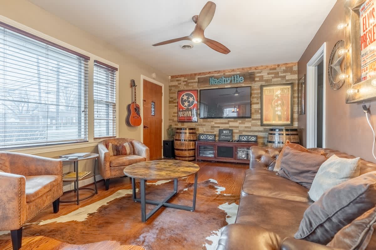 This sweet, sunny cottage has all that you need for a relaxing Nashville getaway! With 3 bedrooms and 1 bath, there’s an abundance of room for your group to unwind. If you’re traveling with kids, the bunk beds and outdoor space will be a hit, along with nearby attractions such as Nashville Shores, Opry Mills Mall, Two Rivers Golf Course and a park with a hiking trail. This home is also located less than 4 miles from the airport, giving this adorable rental