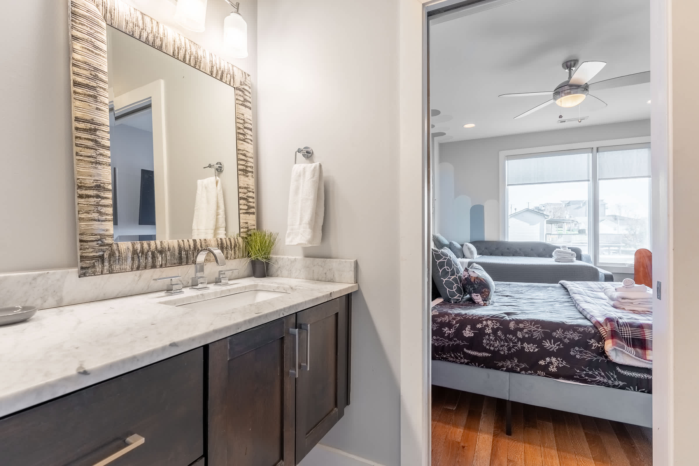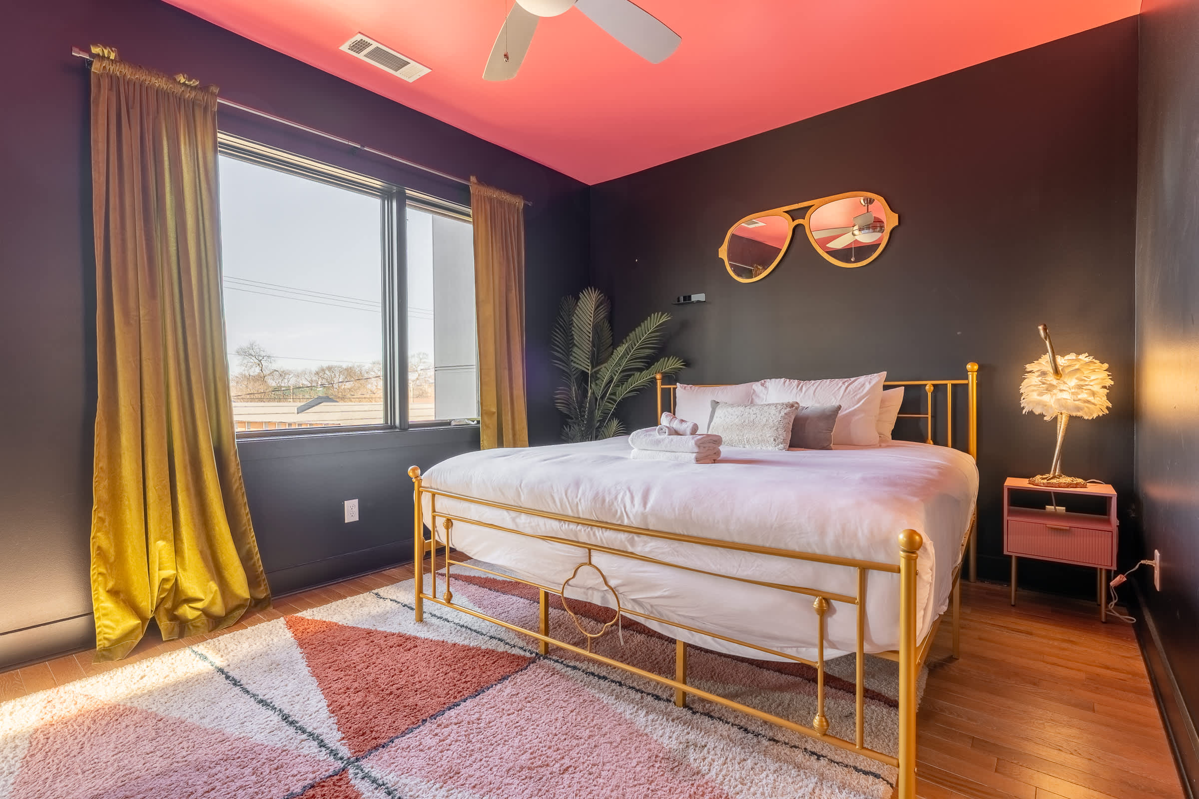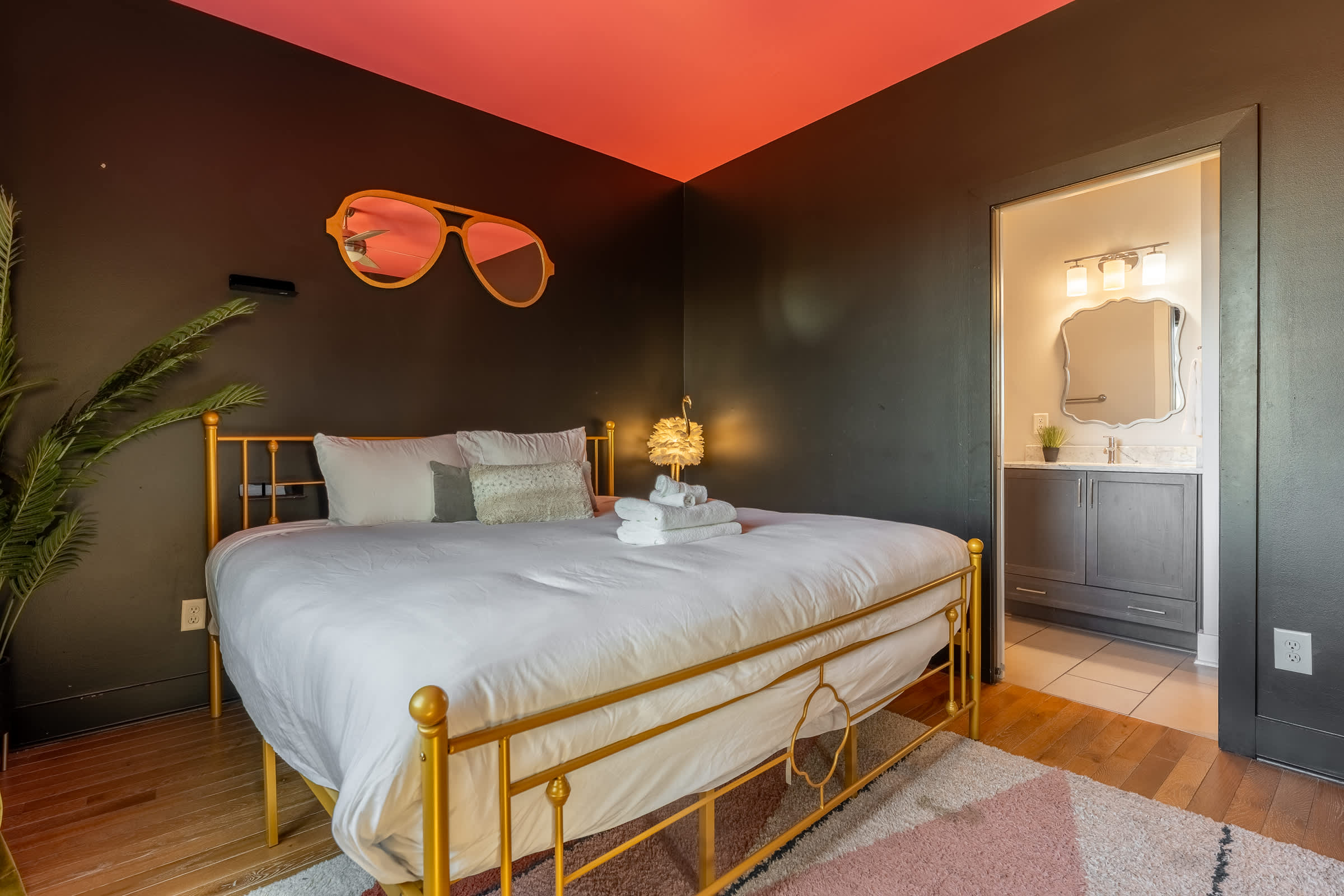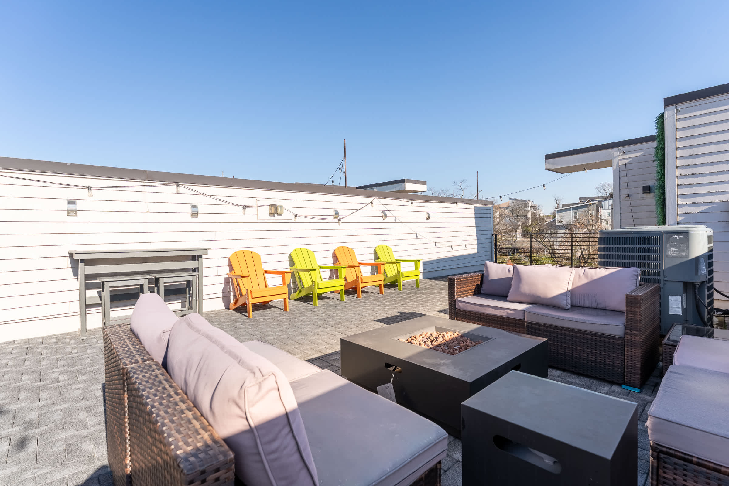 Kick things off on the private rooftop patio, where sweeping skyline views set the stage for sunset cocktails and late-night hangs. Cozy up around the fire pit under the stars before heading out, or, staying in! Inside, the energy continues, with a bright, modern living area that features retro arcade games, plush seating, and an open layout ideal for group gatherings. The fully equipped kitchen makes it easy to whip up meals, snacks, or pre-game drinks before exploring the city. With 4 spacious bedrooms and 3.5 bathrooms, there’s plenty of room for everyone to spread out and recharge after a night out. Thoughtful design and music-inspired touches keep the Nashville spirit alive in every corner of the ultra charming, Vivid Vocals!